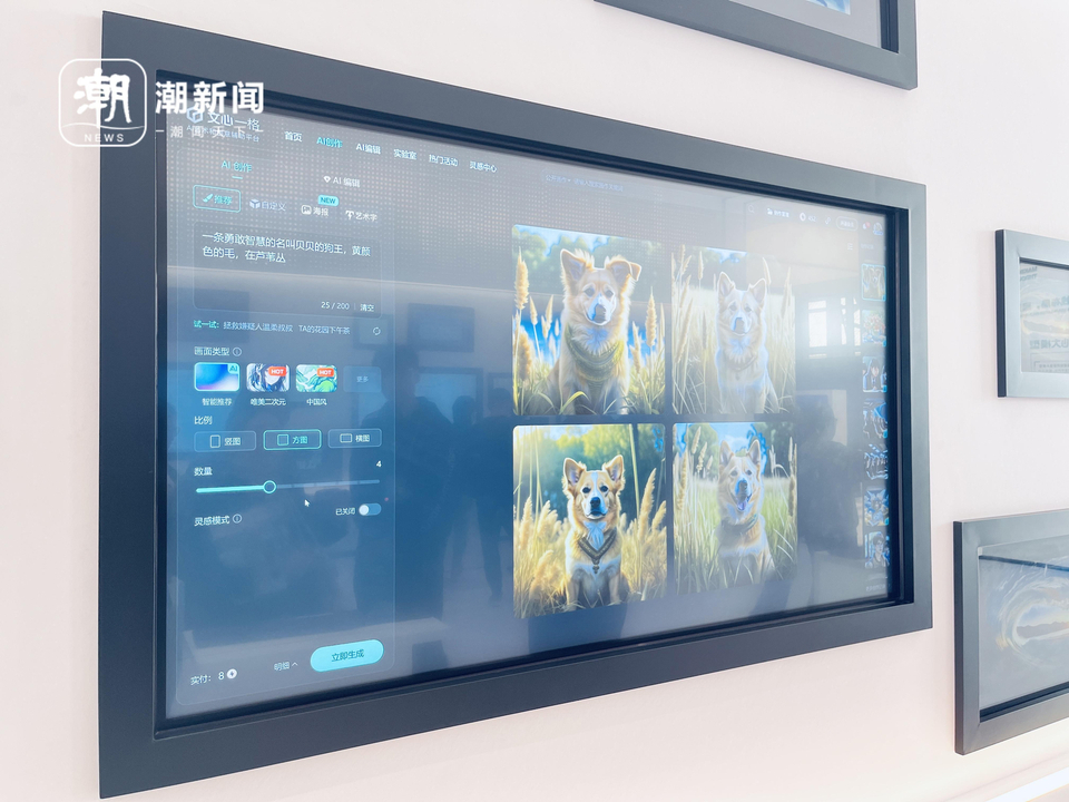 在AI作画平台“文心一格”的体验区,张女士兴致勃勃地输入了这样一段描述:一条勇敢智慧的名叫贝贝的狗王,黄颜色的毛,在芦苇丛。