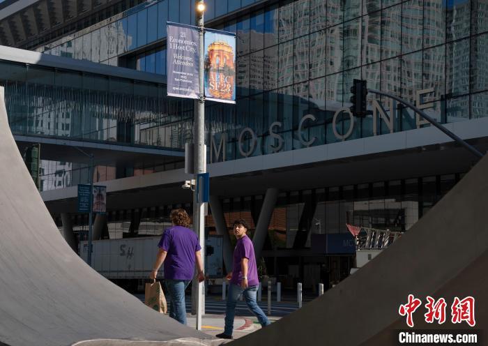 当地时间11月7日,民众从旧金山莫斯康中心附近经过。 中新社记者 刘关关 摄