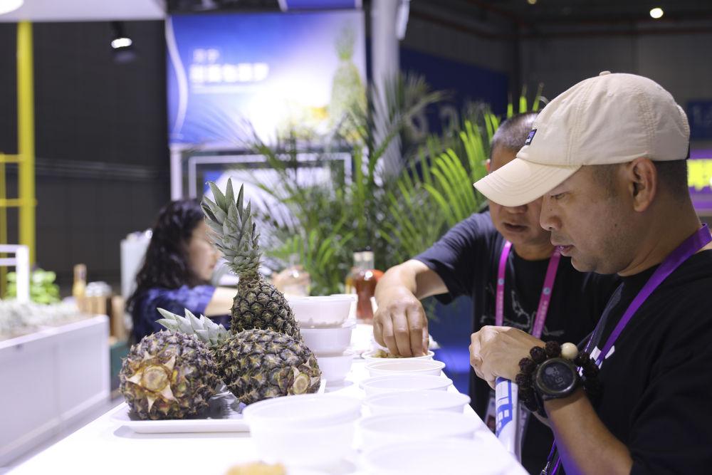 在进博会食品及农产品展区内,首批空运来华的贝宁特产菠萝一上展架,就成为“明星展品”。展台前,水果贸易商贝尔蒂耶·盖德贝·马科斯介绍,进博会筹备期间,将新鲜菠萝空运到中国只用了三天。