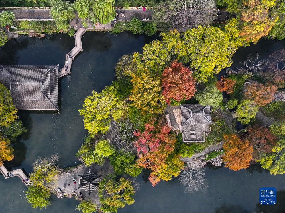 初冬时节,江苏苏州拙政园内色彩斑斓,景色如画,吸引众多游客前来参观游览。