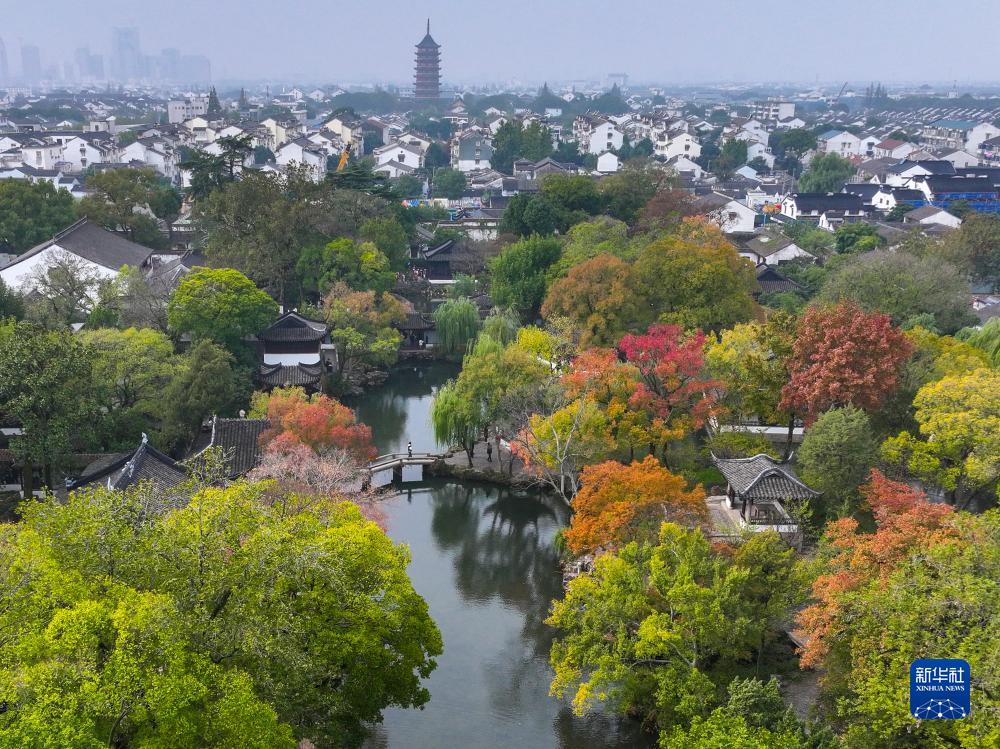 初冬时节,江苏苏州拙政园内色彩斑斓,景色如画,吸引众多游客前来参观游览。