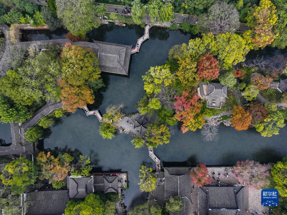 初冬时节,江苏苏州拙政园内色彩斑斓,景色如画,吸引众多游客前来参观游览。