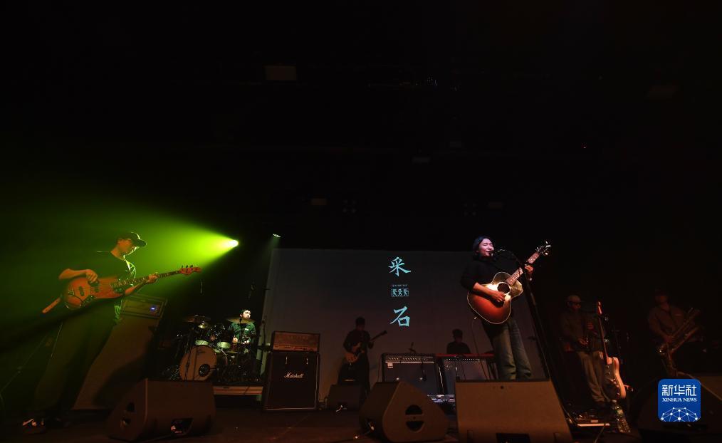 11月25日,万能青年旅店乐队在美国纽约举行的“有朋自东方来”音乐节上表演。新华社记者 李睿 摄
