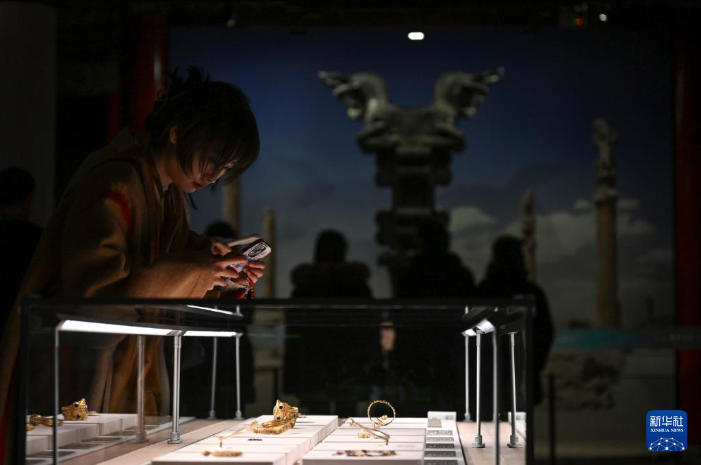 1月10日,媒体记者拍摄展出的黄金首饰。