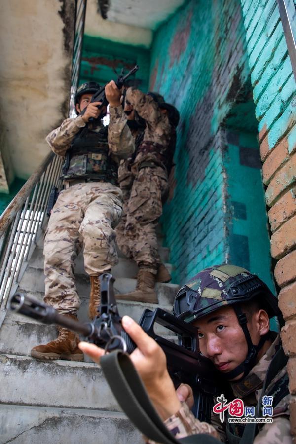 2024年1月9日,武警官兵在队友的掩护下快速突入。刘坚 摄 中国网 发