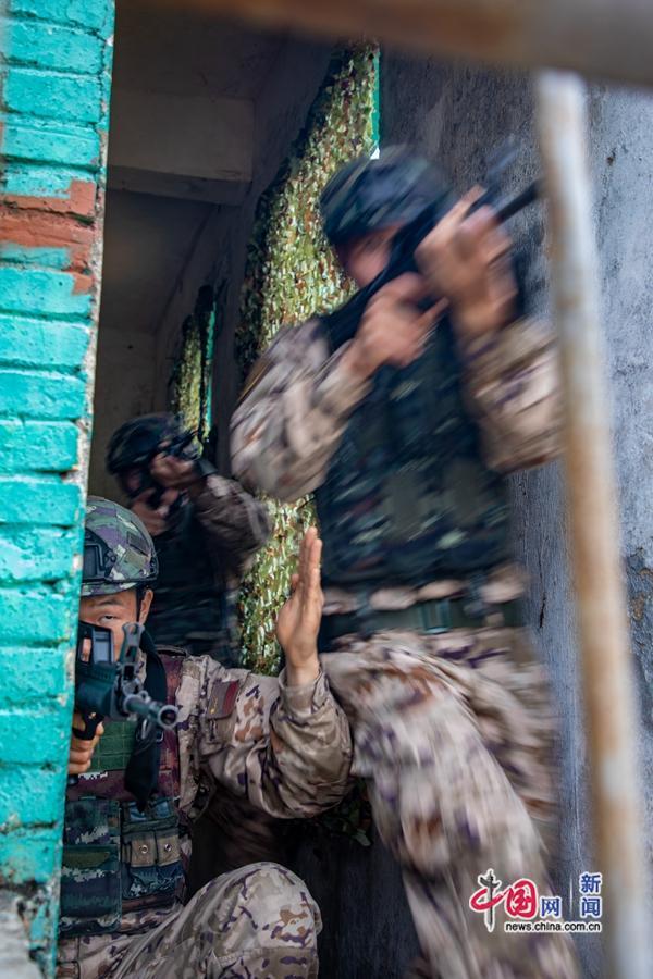 2024年1月9日,一名武警官兵掩护队友前进。刘坚 摄 中国网 发