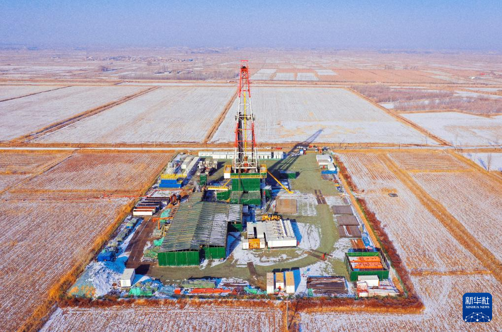 2月8日在内蒙古自治区巴彦淖尔市临河区拍摄的华北油田公司巴彦油田钻井(无人机照片)。新华社记者 李云平 摄