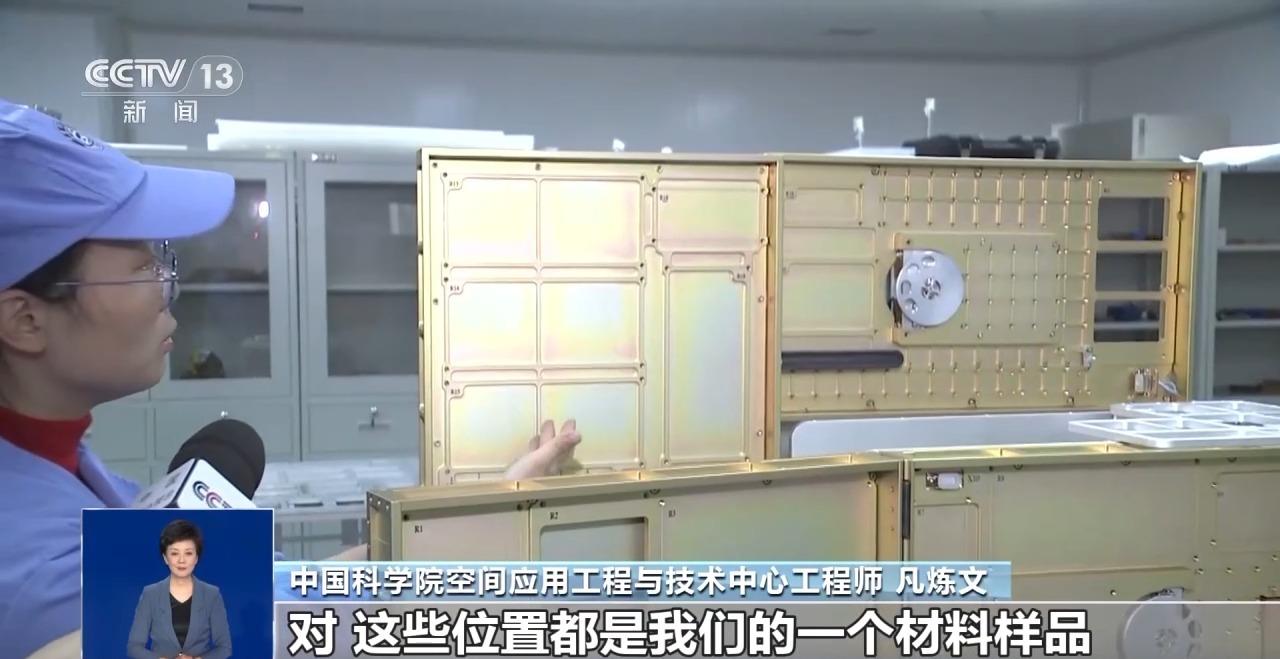 中国科学院空间应用工程与技术中心工程师 凡炼文:这些位置都是我们的材料样品、科学样品的安装位置,前面、后面都是可以安装样品的,为了增加暴露面积。暴露时间分一年的还有半年的,半年期主要安装在后材料箱,大概去年9月份的时候,后材料箱就进行了一个收拢,相当于我们半年的实验考核结束。前材料箱一直是保持展开状态,直到今年3月份结束我们的材料舱外暴露实验。
