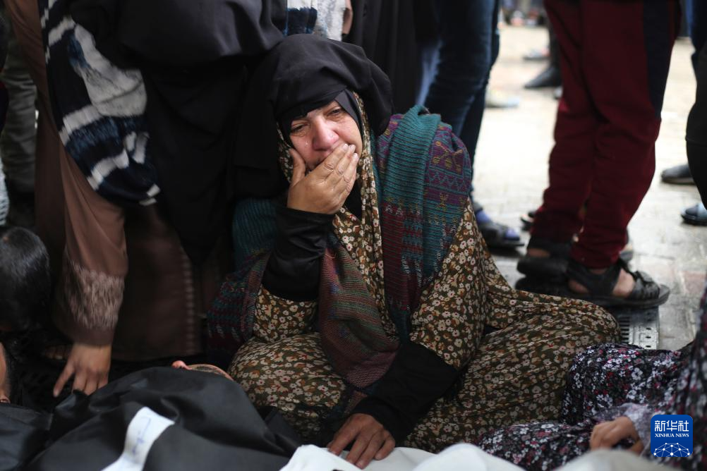 3月19日,在加沙地带南部城市拉法,巴勒斯坦人悼念死于以军轰炸的遇难者。