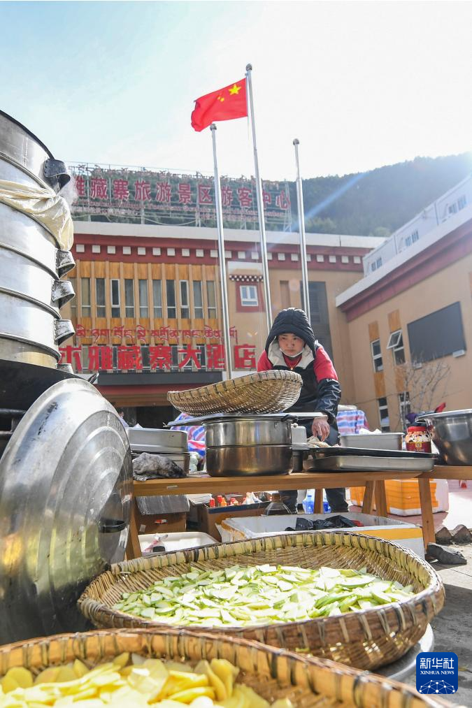 3月19日,在雅江县八角楼乡,当地志愿者为救援人员准备晚饭。