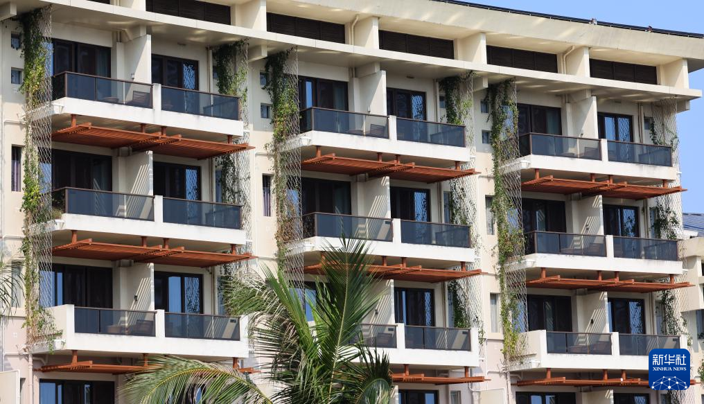 这是3月25日在博鳌近零碳示范区内拍摄的改造过后的博鳌亚洲论坛大酒店。博鳌亚洲论坛大酒店改造是建筑绿色化改造的项目之一,通过完善遮阳系统、增设垂直绿化、改善围护结构隔热性能、优化重构自然通风来减少用能强度,缩短用能时间。