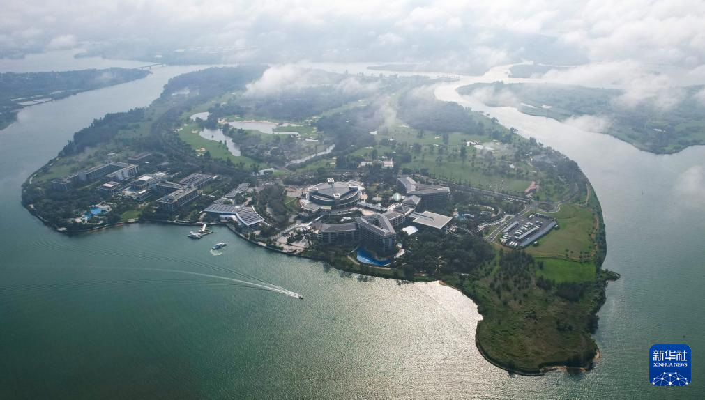 鸟瞰博鳌近零碳示范区所在地——海南省琼海市博鳌镇东屿岛(3月17日摄,无人机照片)。