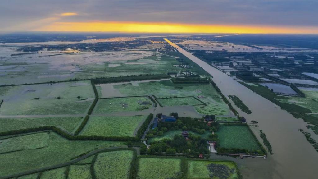 落日下的微山湖绿意盎然。(受访者供图)
