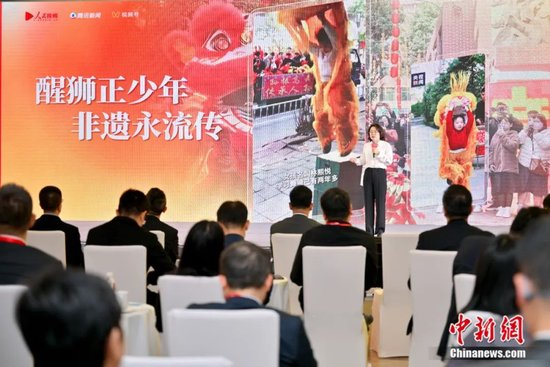 图为人民视频总编辑申宁进行分享。中新社记者 李嘉娴 摄
