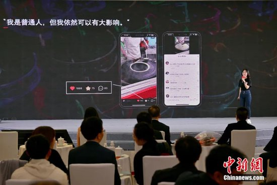 图为快手科技市场部高级总监裴雪珂进行分享。中新社记者 李嘉娴 摄