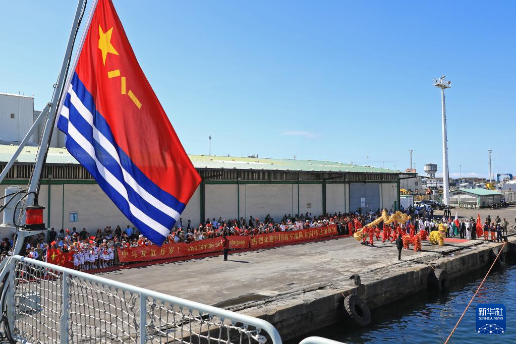 4月10日,中国海军第45批护航编队抵达马达加斯加进行友好访问,欢迎人群挥动两国国旗欢迎编队到访。