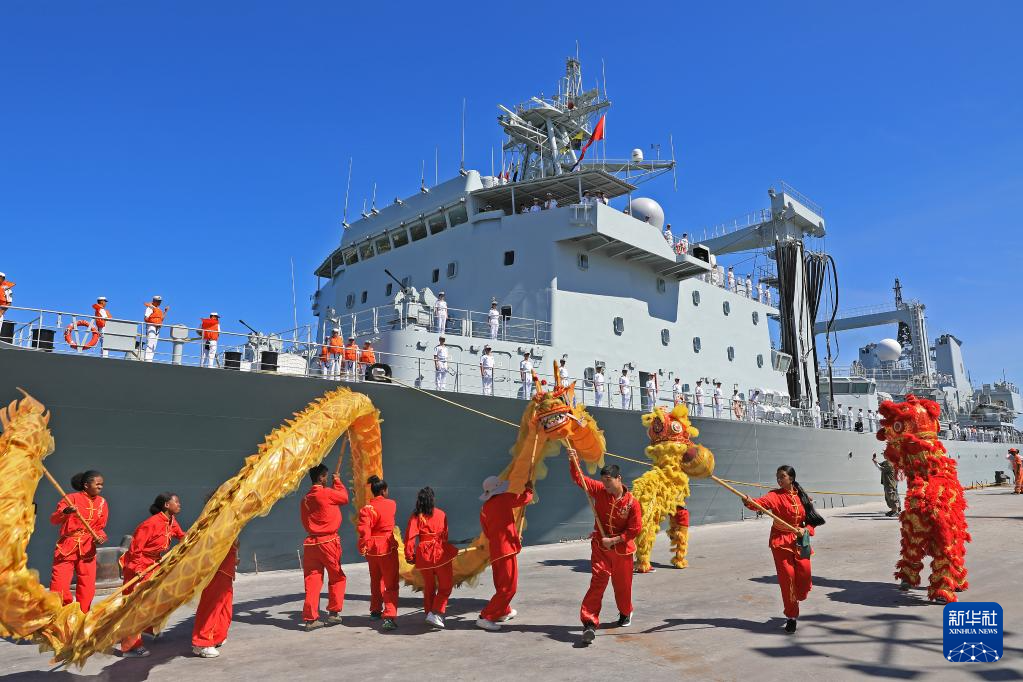 4月10日,中国海军第45批护航编队抵达马达加斯加进行友好访问,欢迎仪式上马方组织舞龙、舞狮表演。