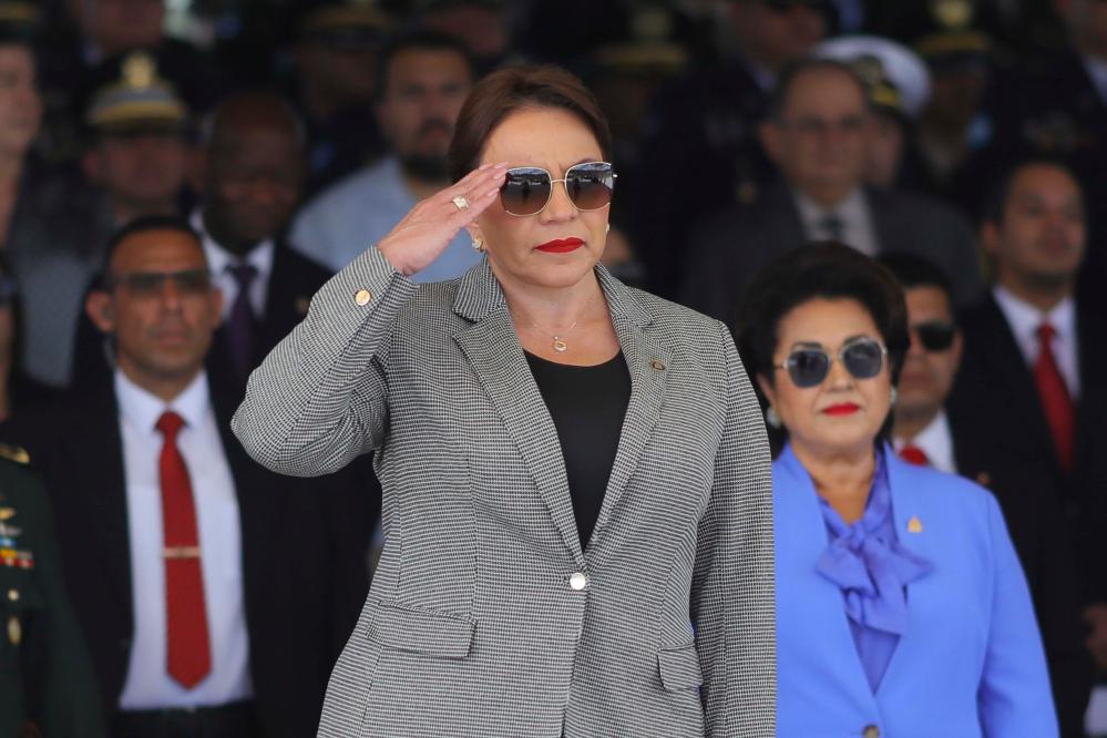 2023年10月3日,在洪都拉斯首都特古西加尔巴,洪都拉斯总统卡斯特罗出席士兵日庆祝活动。新华社发(拉斐尔·奥乔亚摄)
