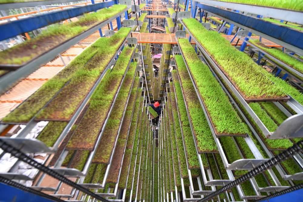 2024年3月21日,村民在湖南省衡山县白果镇国丰农机服务专业合作社育秧。新华社记者 赵众志 摄