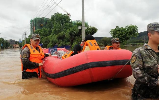 武警转移被困群众。图片来源:广东武警微信公众号