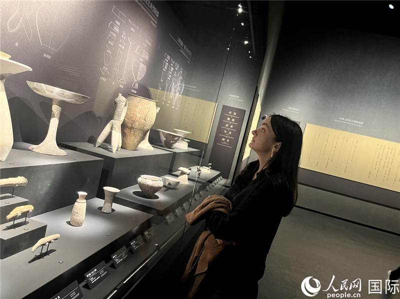 来自白俄罗斯的欧莉娅在三星堆博物馆参观。人民网 王禹蘅摄