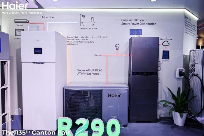 在绿色产品方面,现场展出的节能大容积系列冰箱实现A-20%节能,获行业唯一VDE认证; GenPAl空调可兼容柴油发电机进行供电,搭载ECO三档节能模式有效节省电费;在绿色方案方面,以太阳能空调为核心的全屋能源解决方案、零碳建筑R290ATW解决方案等也吸引了各地客商的关注。