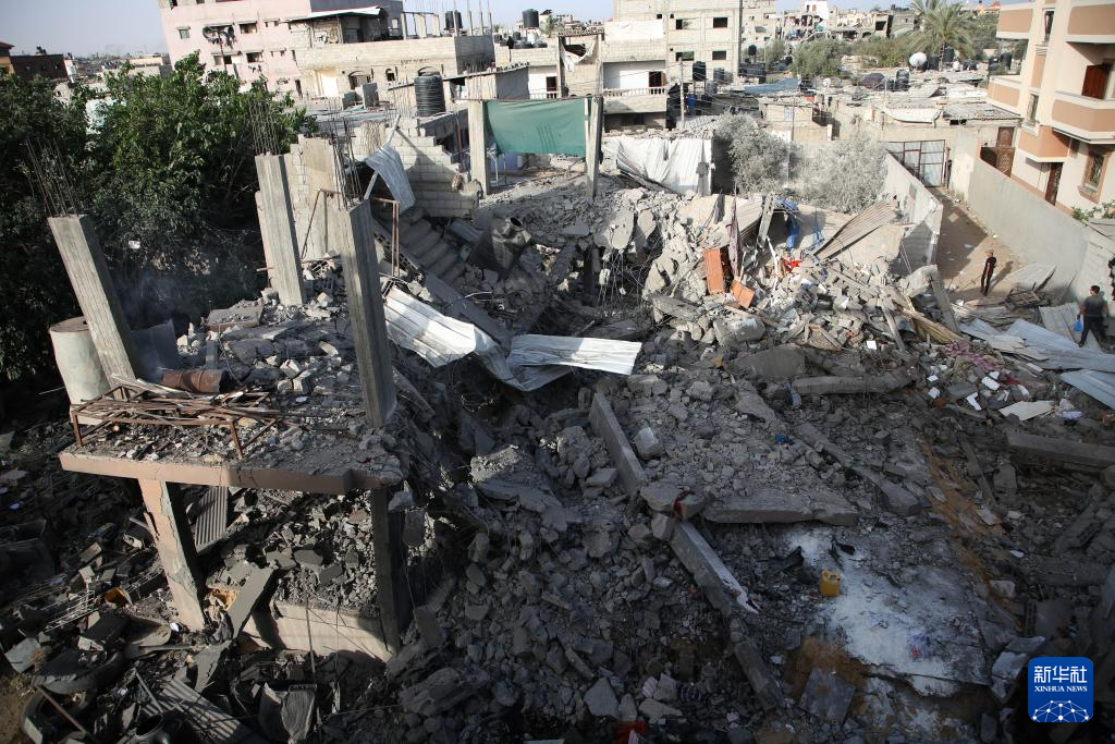 这是4月24日在加沙地带南部城市拉法拍摄的遭袭后的建筑物废墟。