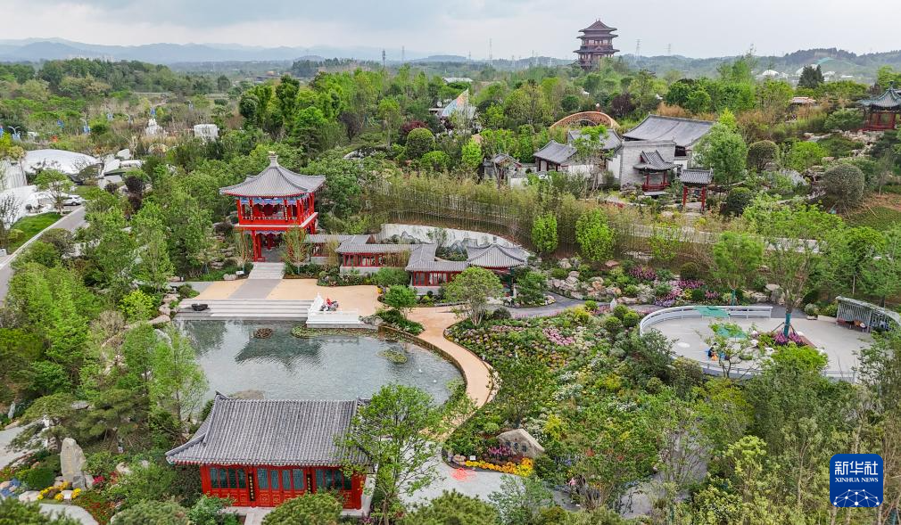 这是4月22日拍摄的成都世园会主会场北京园(无人机照片)。