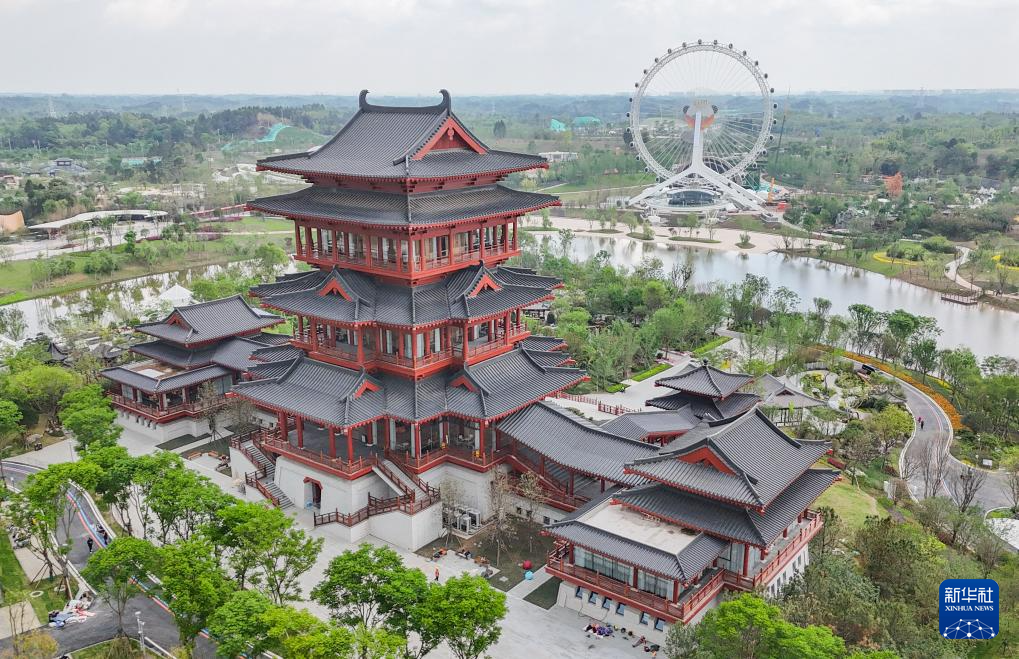 这是4月22日拍摄的成都世园会主会场锦云楼(无人机照片)。