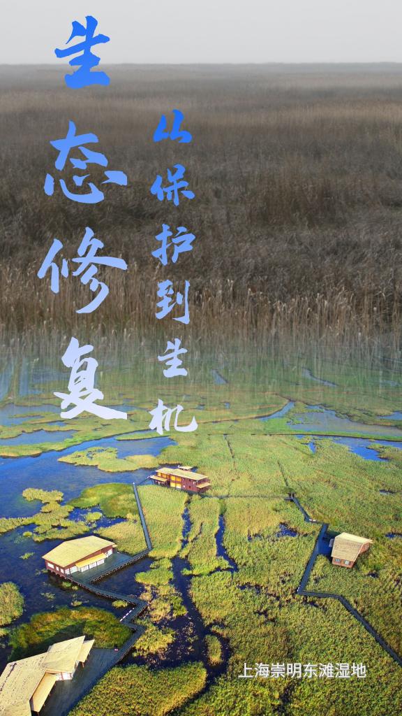 崇明东滩湿地处于长江口核心位置。为了维护湿地生境,守护候鸟迁徙,崇明东滩生态修复项目于2013年启动。现在,这里的生境明显改善,形成了芦苇摇曳、雁鸭齐鸣、鱼翔浅底的和谐美丽景象。
