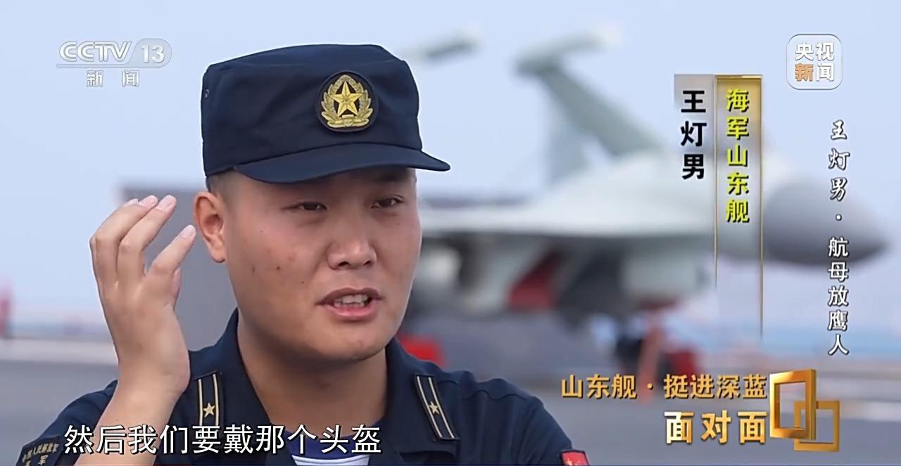 海军山东舰 王灯男:每天都要搞这个流程训练,要随时保持好这个技能。那个噪声是很大的。我们要戴那个头盔,可能会有一定降噪的功能,实际上那个声音对我们还是影响很大,那个声音起来的时候我们的心都跟着在跳。
