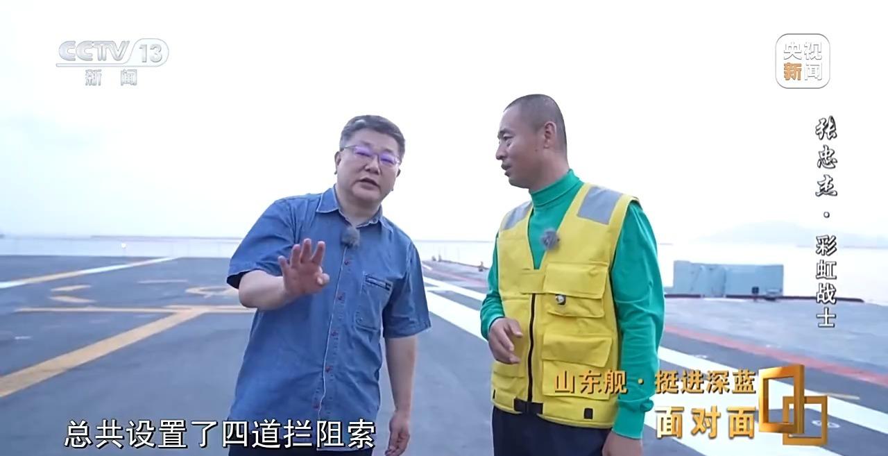 海军山东舰 张忠杰:飞行员他着舰的危险因素不光是这一个,它的危险因素有很多,阻拦只是其中一项。如果说能成功地挂上阻拦索,成功地停住,相当于就完成了任务。对我们来讲,能确保我们的装备是处于一个完好的状态,操作是精准的,流程是规范的,这样我们能保证它在钩上我们阻拦索的时候是不会出问题的。
