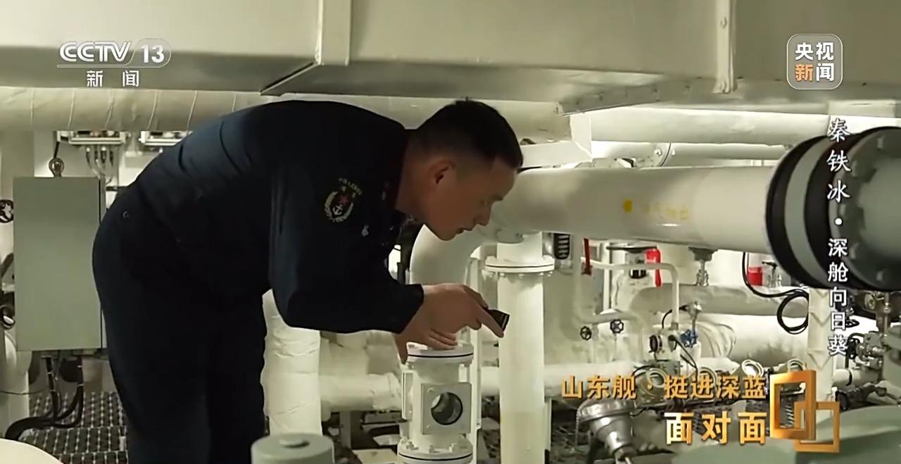 记者:你看在辽宁舰就是在深舱工作,到了山东舰还依然在这样的一个岗位工作,那时候想过调整岗位吗?