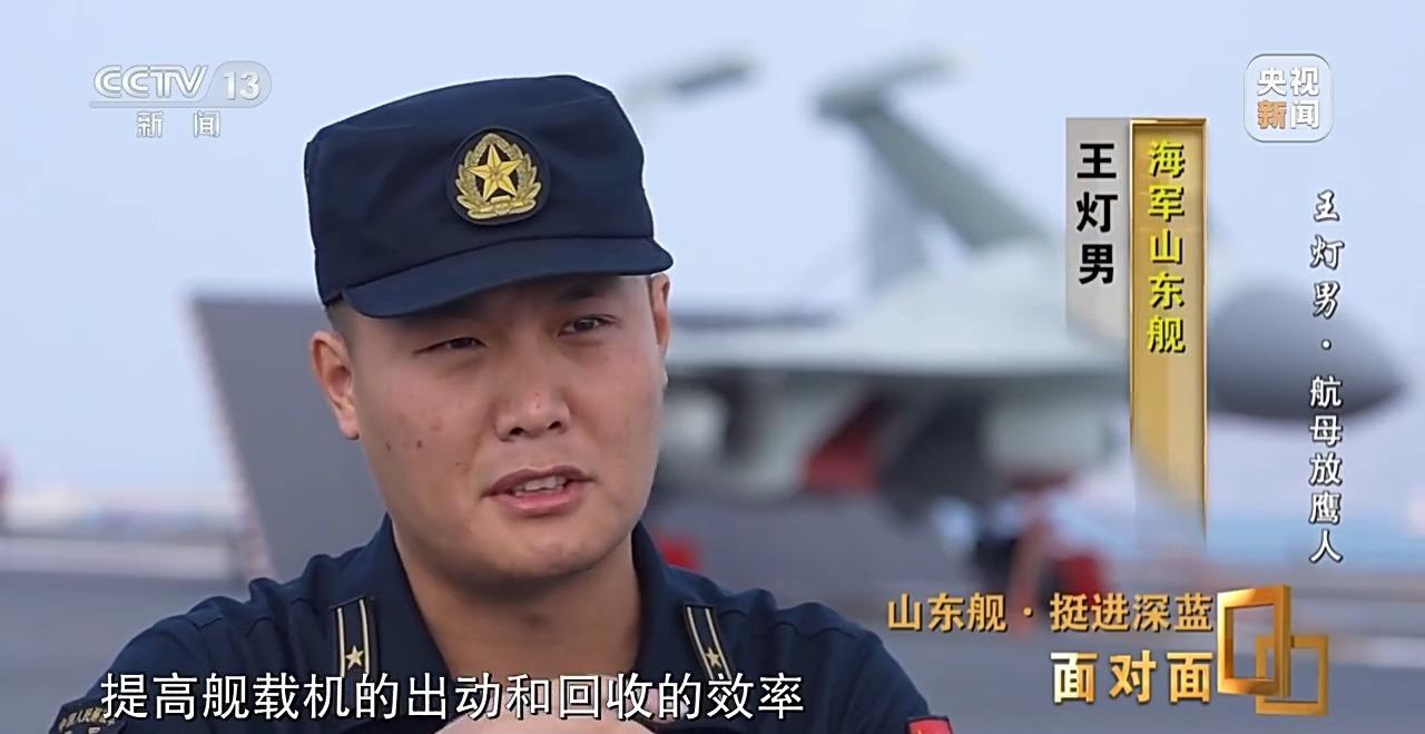 海军山东舰 王灯男:现在我们主要还是想从我们自身的努力去做起,把这个流程进一步地优化,提高舰载机的出动和收回的效率。因为这个效率来讲对我们才是最关键的一个指标,只有放飞更多的飞机出去,更多的飞机能够安全地回来,才能体现我们这个船的战斗力。