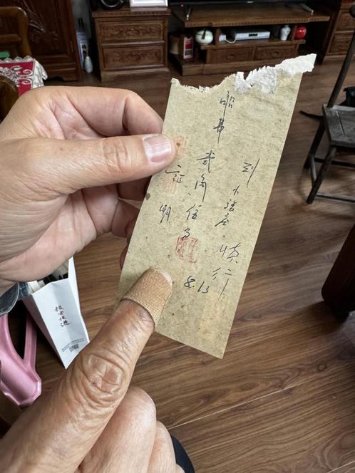 4月26日,杨建新在展示一张1960年前后的手写船票,上面注明“到小张庄船费贰角伍分”。新华社记者 张硕 摄