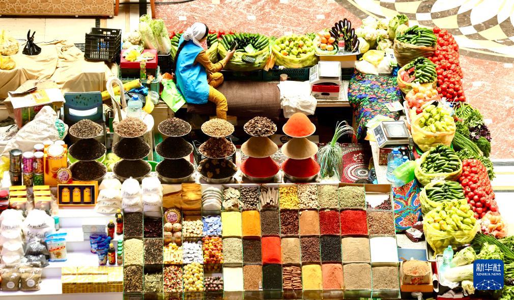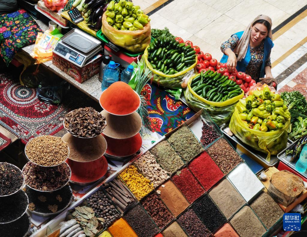 各色的果蔬、多彩的香料、琳琅的商品,共同绘就了塔吉克斯坦首都杜尚别大巴扎这一幅彩色画卷。