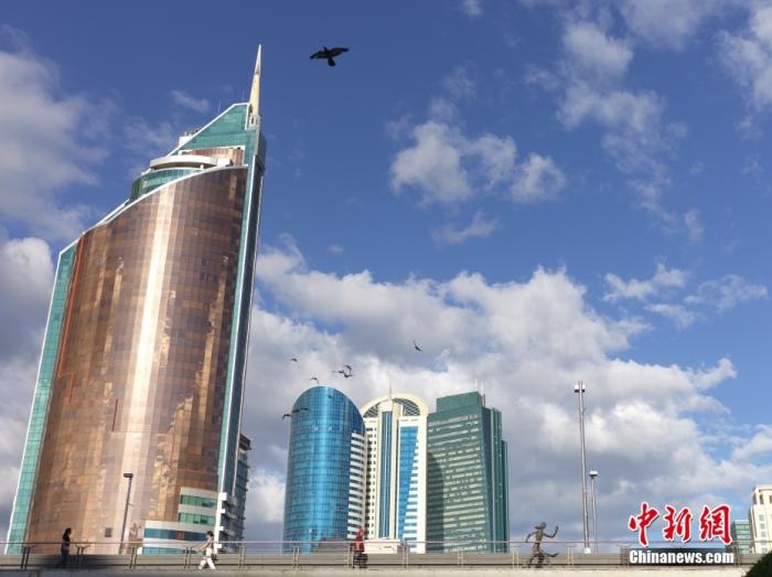 资料图:阿斯塔纳是哈萨克斯坦共和国首都,伊希姆河穿城而过,夏季凉爽、冬季严寒,生态环境良好。图为7月1日拍摄的阿斯塔纳城市景色。