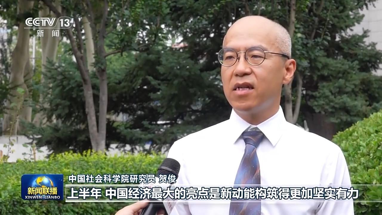 中国社会科学院研究员 贺俊:上半年,中国经济最大的亮点是新动能构筑得更加坚实有力。工业机器人、集成电路、新能源汽车等技术复杂度高、符合消费升级的先进制造业以及软件和信息服务业、仓储物流等现代服务业领跑产业发展,更有韧性、更有活力、更有效率的现代化产业体系加快形成和完善。