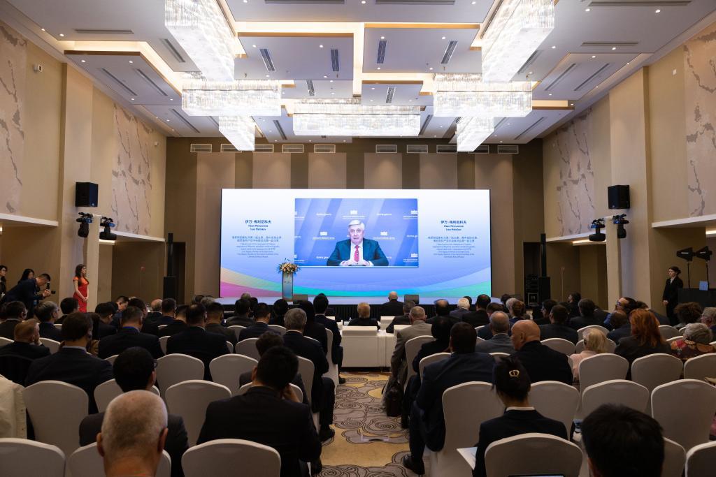 9月23日,在俄罗斯首都莫斯科,俄罗斯国家杜马第一副主席、俄中友好协会主席梅利尼科夫在2024金砖国家治国理政研讨会暨人文交流论坛上发表视频讲话。新华社记者白雪骐摄