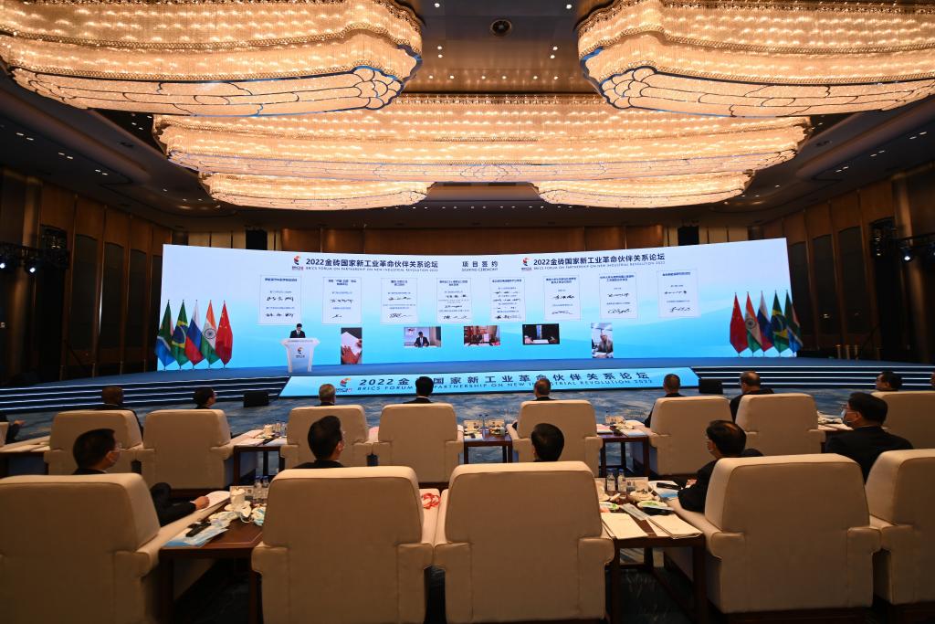 这是2022年9月7日拍摄的金砖国家新工业革命伙伴关系创新基地项目签约仪式现场。新华社记者林善传摄