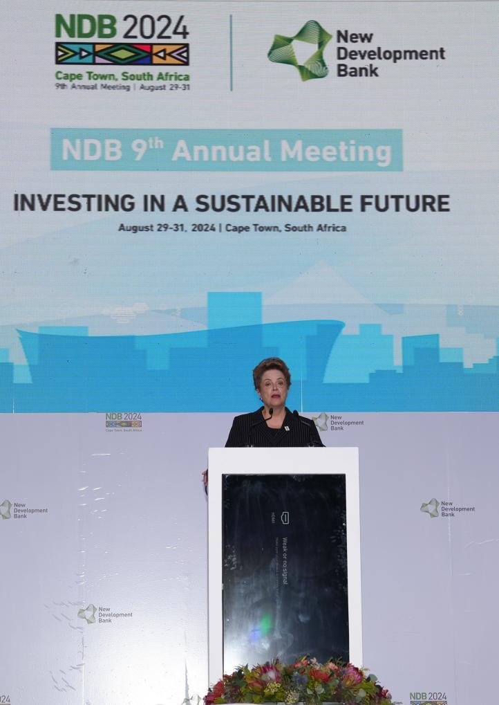 8月30日,在南非开普敦,新开发银行行长罗塞芙在该行第九届理事会年会开幕式上致辞。新华社记者王雷摄