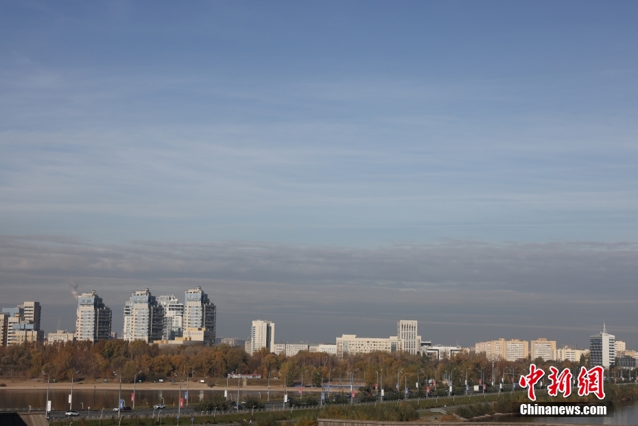 当地时间10月20日,俄罗斯喀山大街上悬挂着金砖峰会条幅。金砖国家领导人第十六次会晤将于2024年10月22日至24日在俄罗斯喀山举行。中新社记者 盛佳鹏 摄