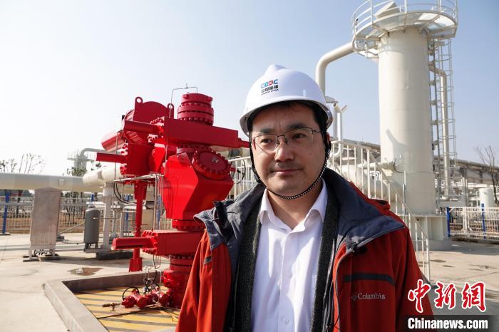 团队成员、中国科学院武汉岩土所马洪岭研究员在湖北应城300兆瓦盐穴压缩空气储能电站示范工程现场接受采访。中新网记者 孙自法 摄