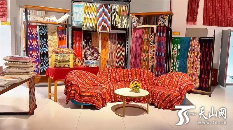伊宁市一位姑娘用艾德莱斯自制马面裙
