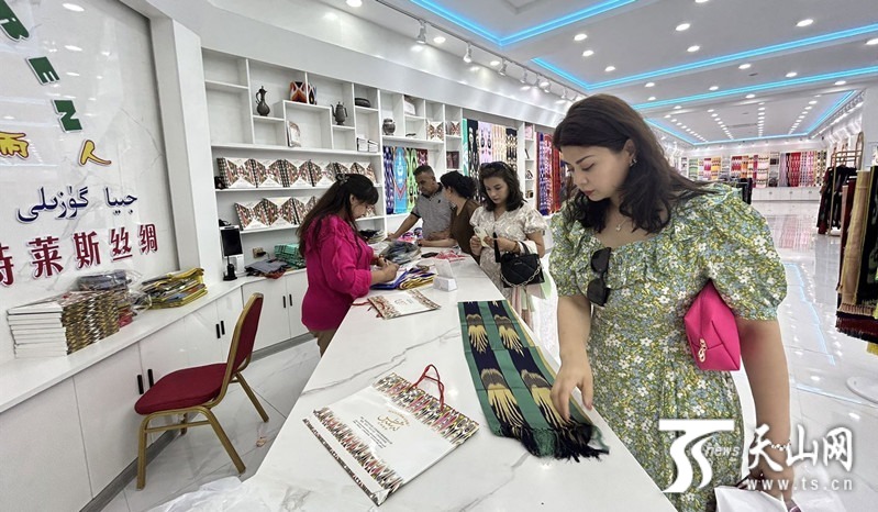 游客在选购艾德莱斯制品。天山网-新疆日报记者 张小宓 摄