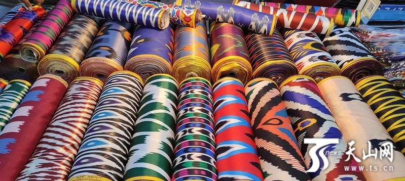 喀什街头售卖的艾德莱斯布料。天山网-新疆日报记者马新玲 摄