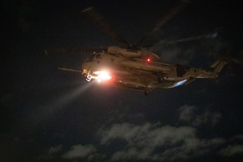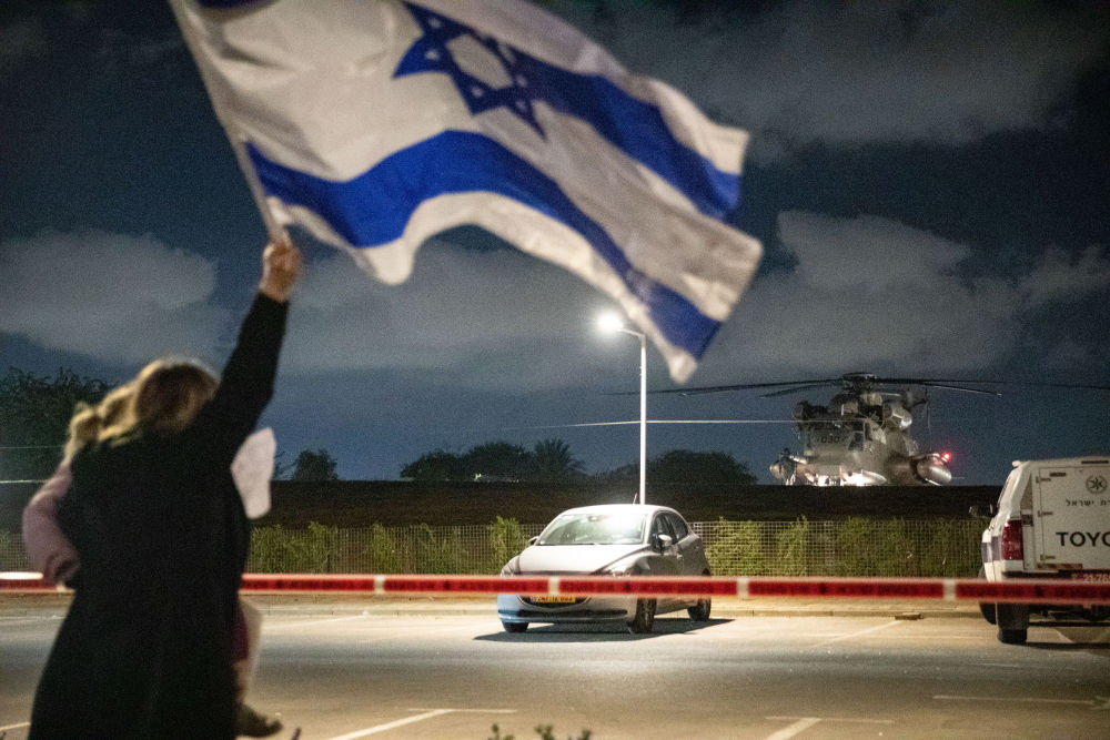 1月19日,搭载获释以色列人的直升机抵达以色列拉马特甘的一所医院附近。新华社记者 陈君清 摄