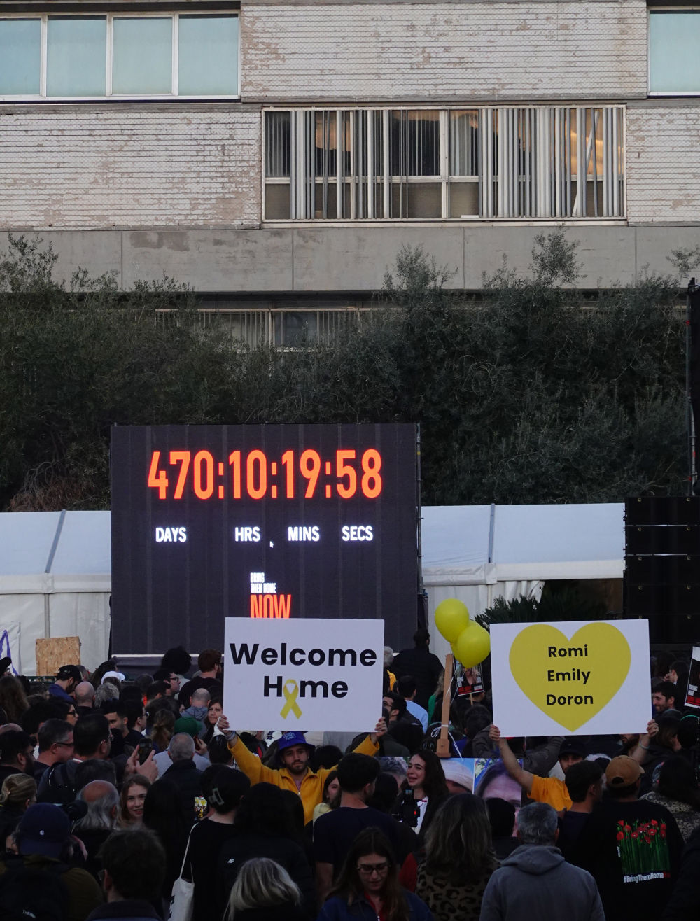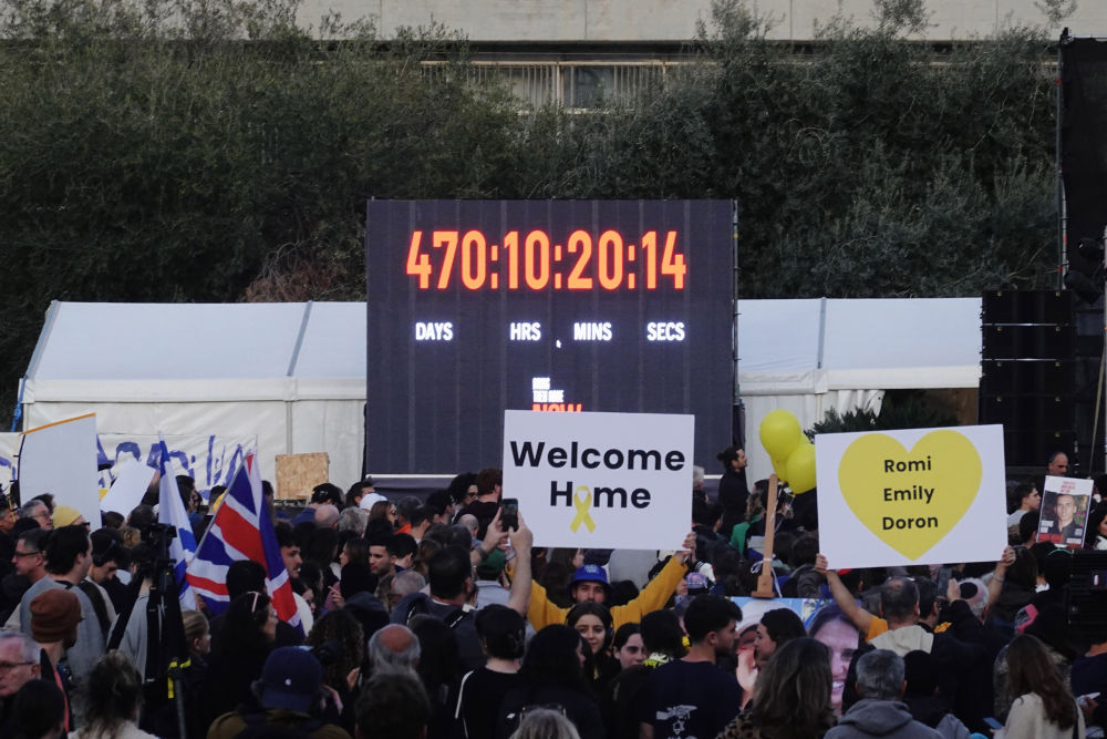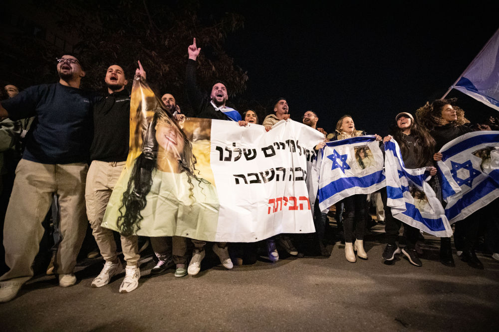 1月19日,人们在以色列特拉维夫的一座广场集会,欢迎3名以色列人被释放回国。新华社记者 王卓伦 摄