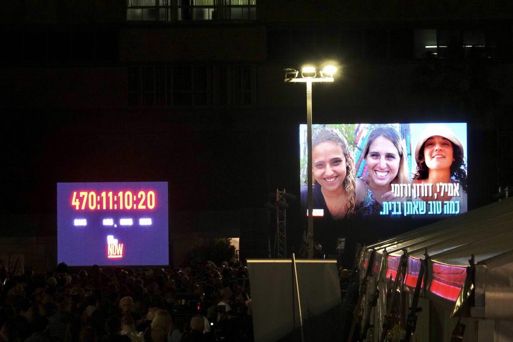 1月19日,人们在以色列特拉维夫的一座广场集会,欢迎3名以色列人被释放。新华社记者 王卓伦 摄