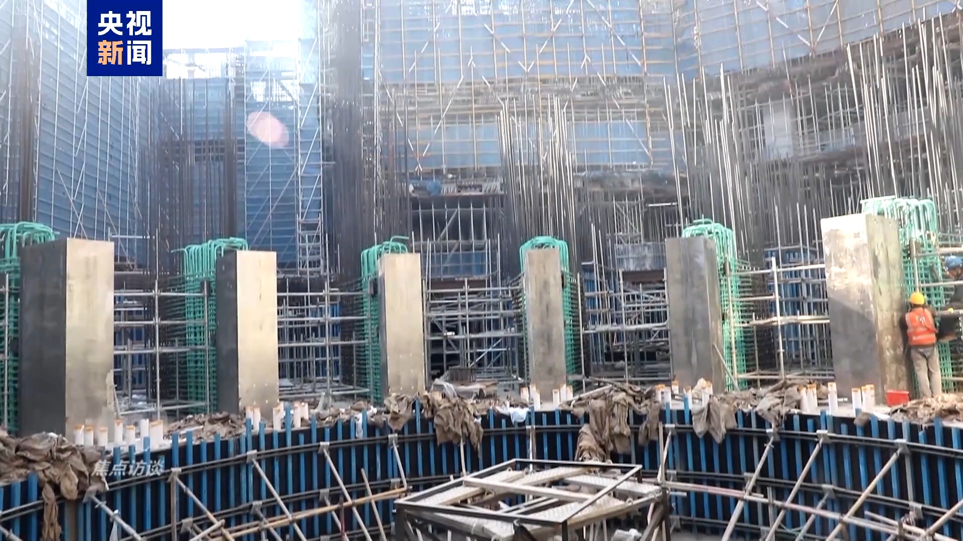 记者跟随王锋顺着脚手架一路下行,进入了项目施工现场的内部。为了达到项目要求的质量,任何一项微小的细节都不容有失。王锋几乎每天都要进入现场监督施工进度和质量,可以说每一根钢筋怎么扎,扎得牢不牢,王锋都会仔细关注。